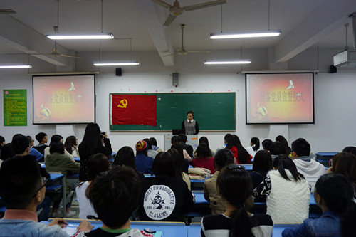 本次培训班从11月10日到11月13日,展开了为期三天的课程。党课内容分为四节:“中国共产党的光辉历程”、“党的基础知识”、“党员发展流程”、“书写美丽人生,织就中国梦”。党员任雪美老师,贾春竹老师,杨小娟老师,钱怡乐老师在此次党校课中担任党校培训的主讲老师。老师们循循善诱的讲解,充分调动了广大学生的学习热情。整个课堂学习氛围浓厚,不失活跃。同学们严以律己,专心倾听老师的讲解,不时点头示意;老师们尽心尽责,通过课堂短片,图片,小故事等方式生动形象地讲解,同学们受益颇多。